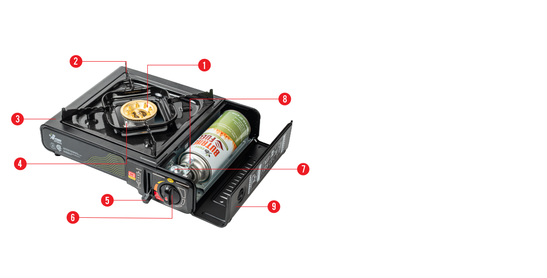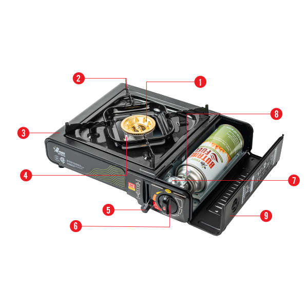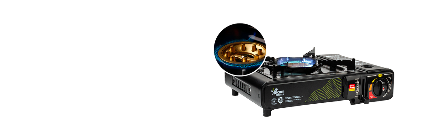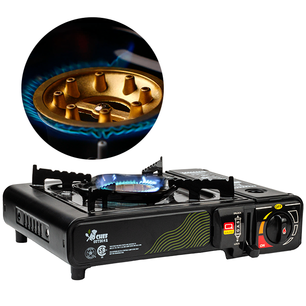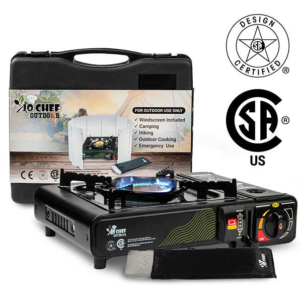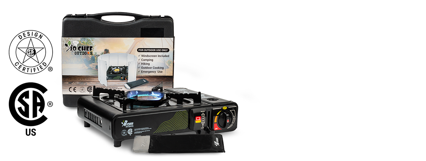 The JoChef Camp Stove Butane Burner is CSA certified, meeting the rigorous industry standards for use with butane fuel. JoChef camping cooking stove includes a safety lock feature, built-in pressure sensor protection, and gas leakage protection
