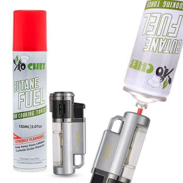 Jo Chef Butane Torch Lighter, Quad Flame Jet Lighter, Use for Years - Durable Metal Body, Clear Fuel Window, Torch Lighters Butane Refillable, Luxury Gift Ready Packaging
